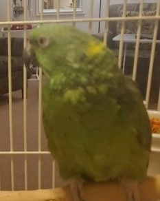 Angel is a sweet, calm bird who seems content and likes hanging out on op of there cage. Also likes looking out the window
